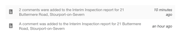 If you use tenant comments for your reports, you’ll now start seeing notifications in your activity stream when a tenant adds a new comment. Multiple comments within 30 minutes of each other are grouped together so you’ll only see one activity item, rather than a notification for each one.